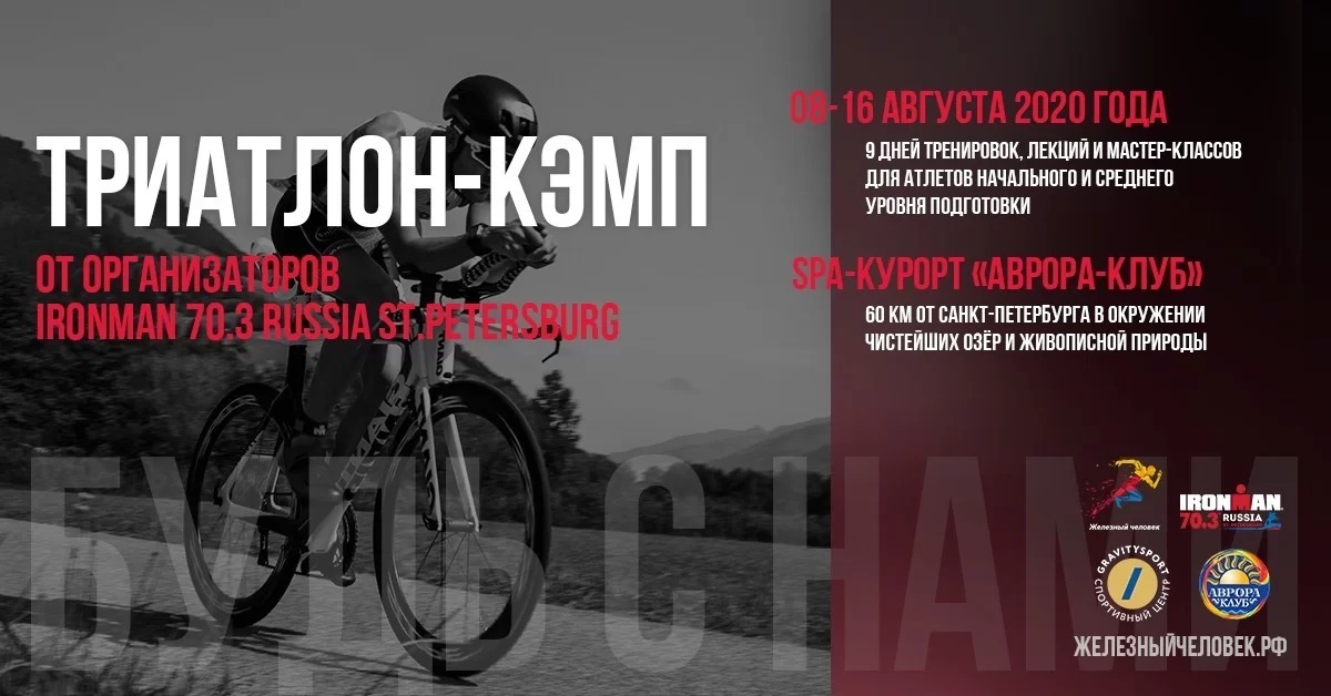 IRONMAN 70.3 Russia St.Petersburg запускает тренировочный сбор в Санкт-Петербурге в период с 8 по 16 августа 2020 года.На территории SPA-курорта «Аврора-клуб» для спортсменов начального и среднего уровня подготовки пройдет первый триатлон-кэмп от организаторов гонки IRONMAN 70.3. Девять дней активных тренировок, лекций и мастер-классов в компании единомышленников.